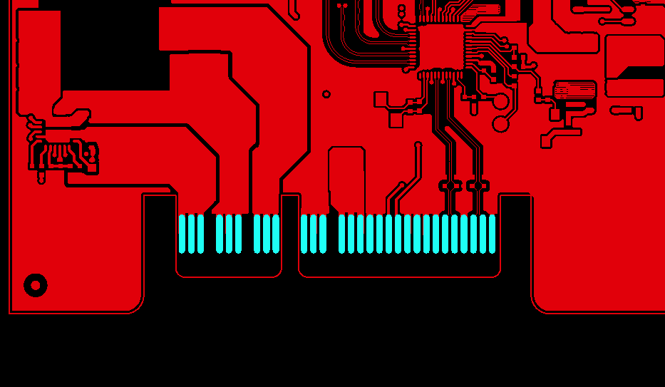 2. Within 1mm of the gold fingers there should be no SMD parts, plated holes, or solder pads.